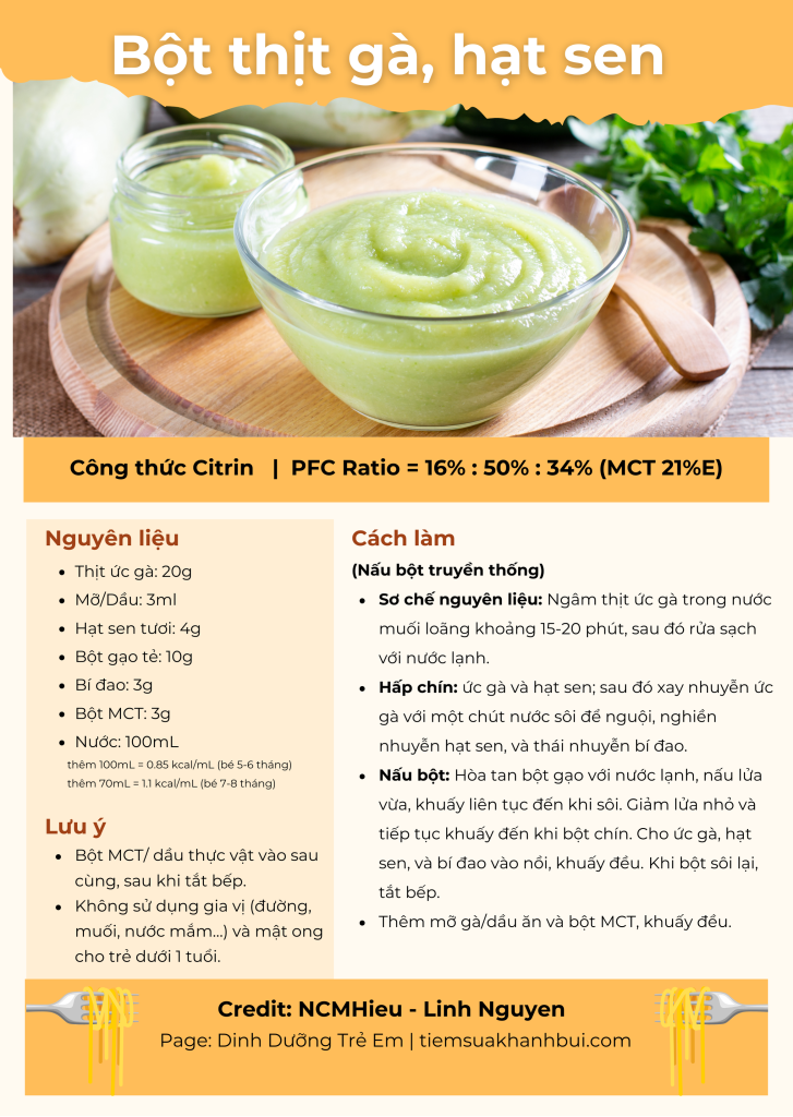 - Trẻ ăn ít hơn hoặc nhiều hơn có thể gia giảm theo công thức tam suất (tuy nhiên cần lưu ý lượng MCT cả ngày sao cho đủ bằng 20% nhu cầu năng lượng của trẻ)