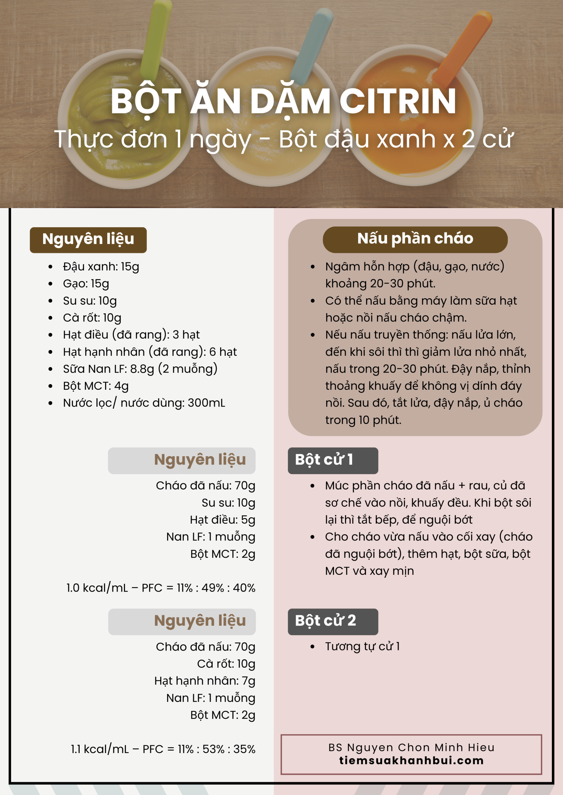 Nghe nói ngày mai có một em bé của mình tập ăn dặm. Sẵn dịp test cháo đậu xanh, lên luôn tỉ lệ bột cho em tập thử nhé.