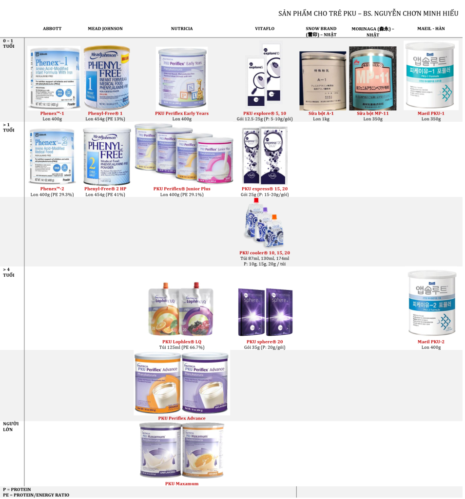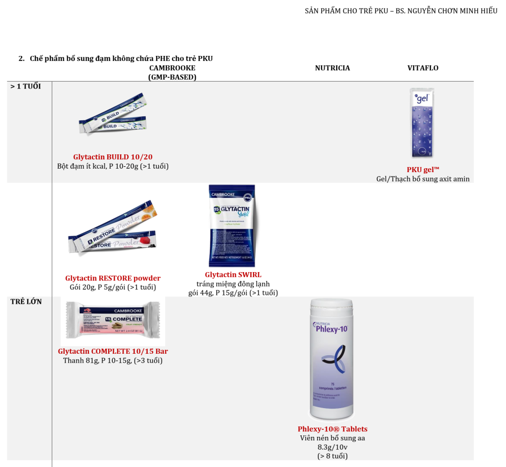 1. Chế phẩm bổ sung đạm không chứa PHE cho trẻ PKU
