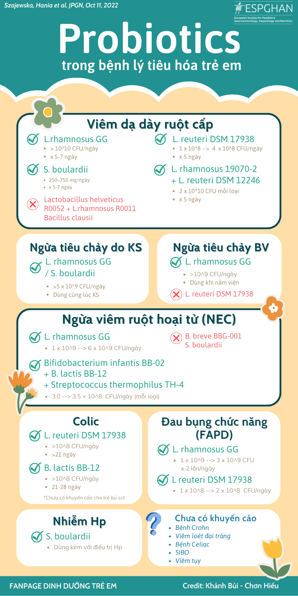 Sau khuyến cáo về SYNBIOTICS trong bệnh lý tiêu hóa ở trẻ em được ESPGHAN công bố vào tháng 7/2022 trên JPGN. Thì cách đây vài ngày, ESPGHAN đã đưa ra khuyến cáo cho PROBIOTICS (có bản accepted cách đây 5 ngày)