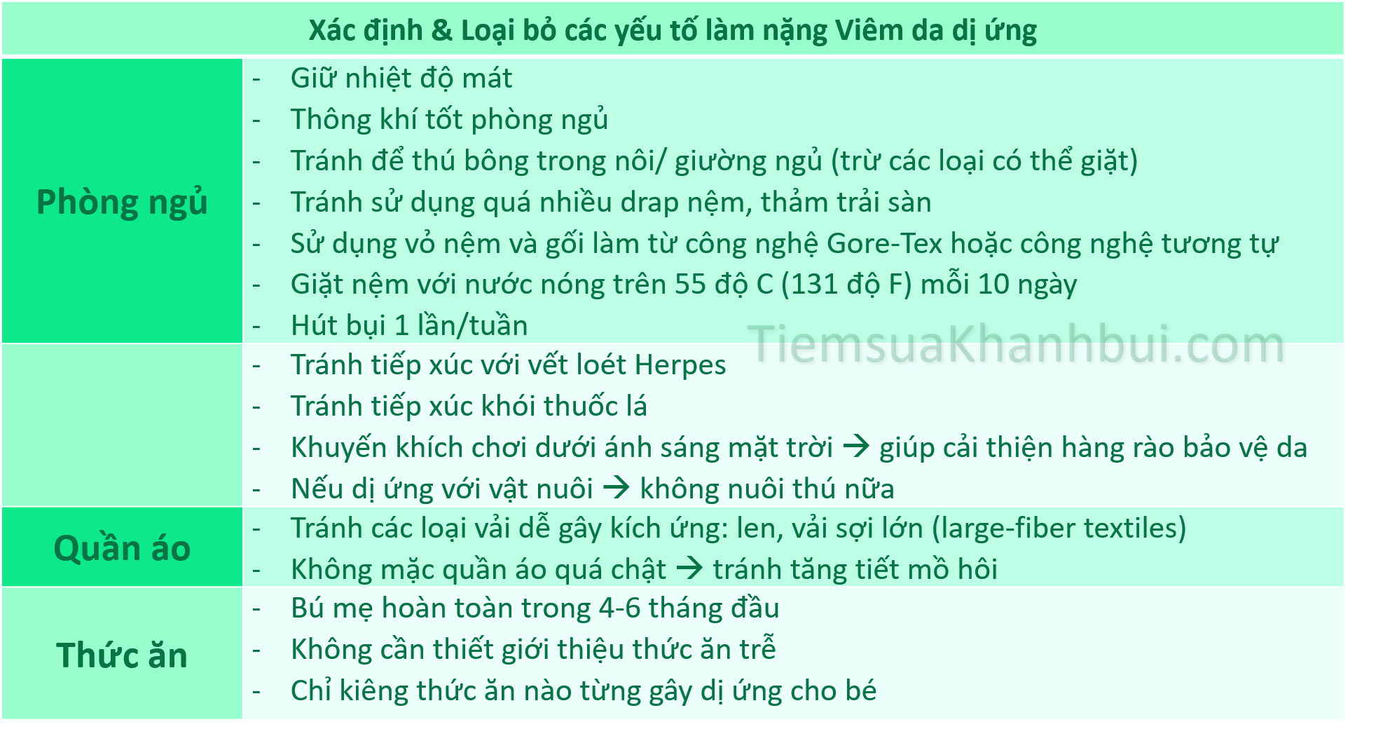 - Xác định và loại bỏ các yếu tố gây kích ứng